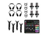Kompletní podcastový set pro čtyři osoby, obsahuje: RØDECaster Pro II – streamovací mix, 4x PodMic – broadcastový mikrofon, 4x NTH-100 – profesionální sluchátka, 4x PSA1+ - stolní mikrofonní...