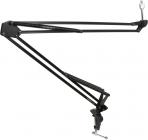 Mikrofonní stojan jednoramenný, dvoubodové upínání, výsuvné rameno, materiál: ocel, výška: 103-169 cm, délka ramene: 88 cm, barva: černá