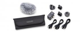 Sada příslušenství pro Zoom H1n, obsahuje: polstrované pouzdro, pěnovou protivětrnou ochranu, AC adaptér AD-17 (typ USB), USB kabel